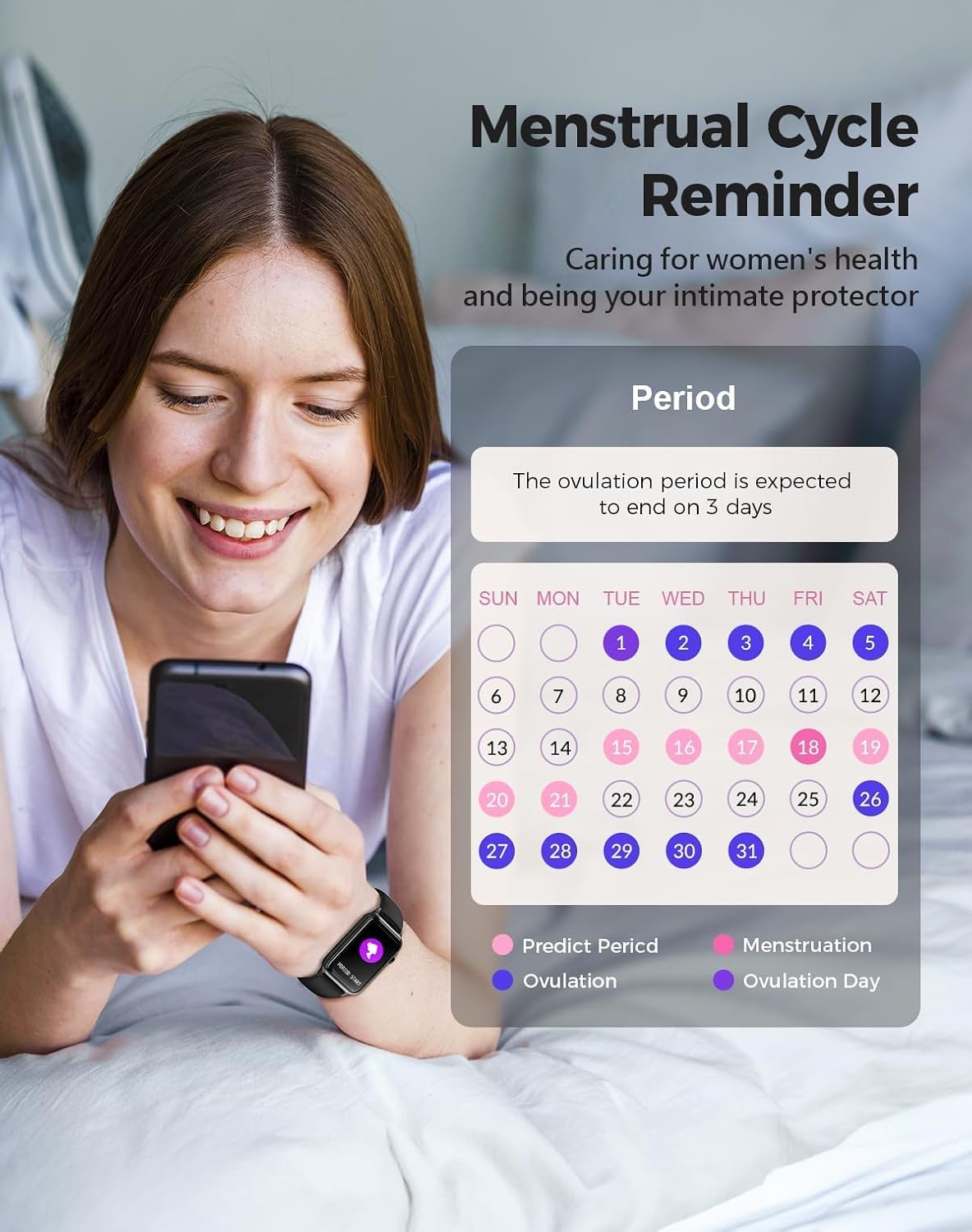 For women, this heath fitness watch takes health tracking a step further with its Menstrual Period Reminder feature. It helps you track your menstrual cycle and provides helpful reminders for the different phases, ensuring you’re always informed and prepared. This feature is a fantastic tool for women seeking to understand their bodies better and manage their health more effectively.