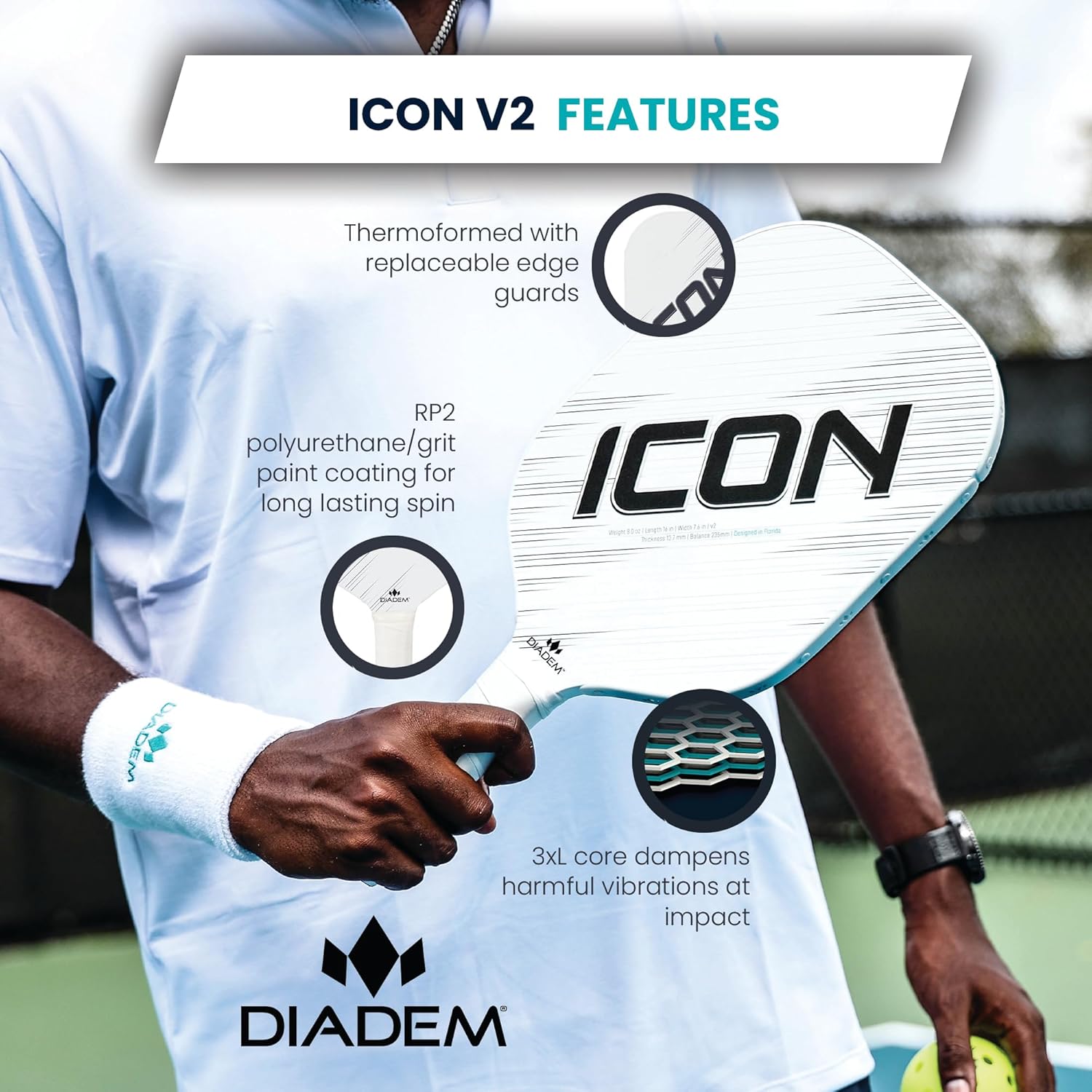 PERFECTLY BALANCED & BEAUTIFULLY DESIGNED: With a sleek but protective replaceable edge guard, Icon v2 players will have the power to control the court against their opponent and look good doing it!