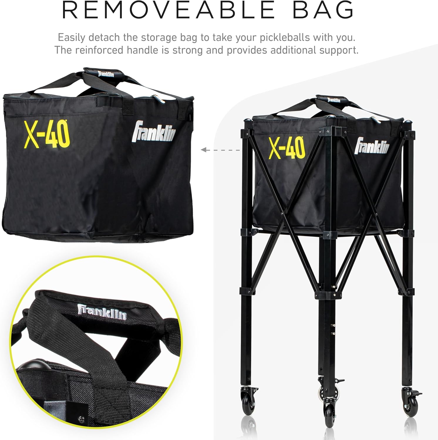 REMOVEABLE BAG: Easily detach the storage bag to take your pickleballs with you! The carry bag is designed with reinforced handles and additional side pockets for paddle storage and a valuables pocket for your phone, wallet or keys