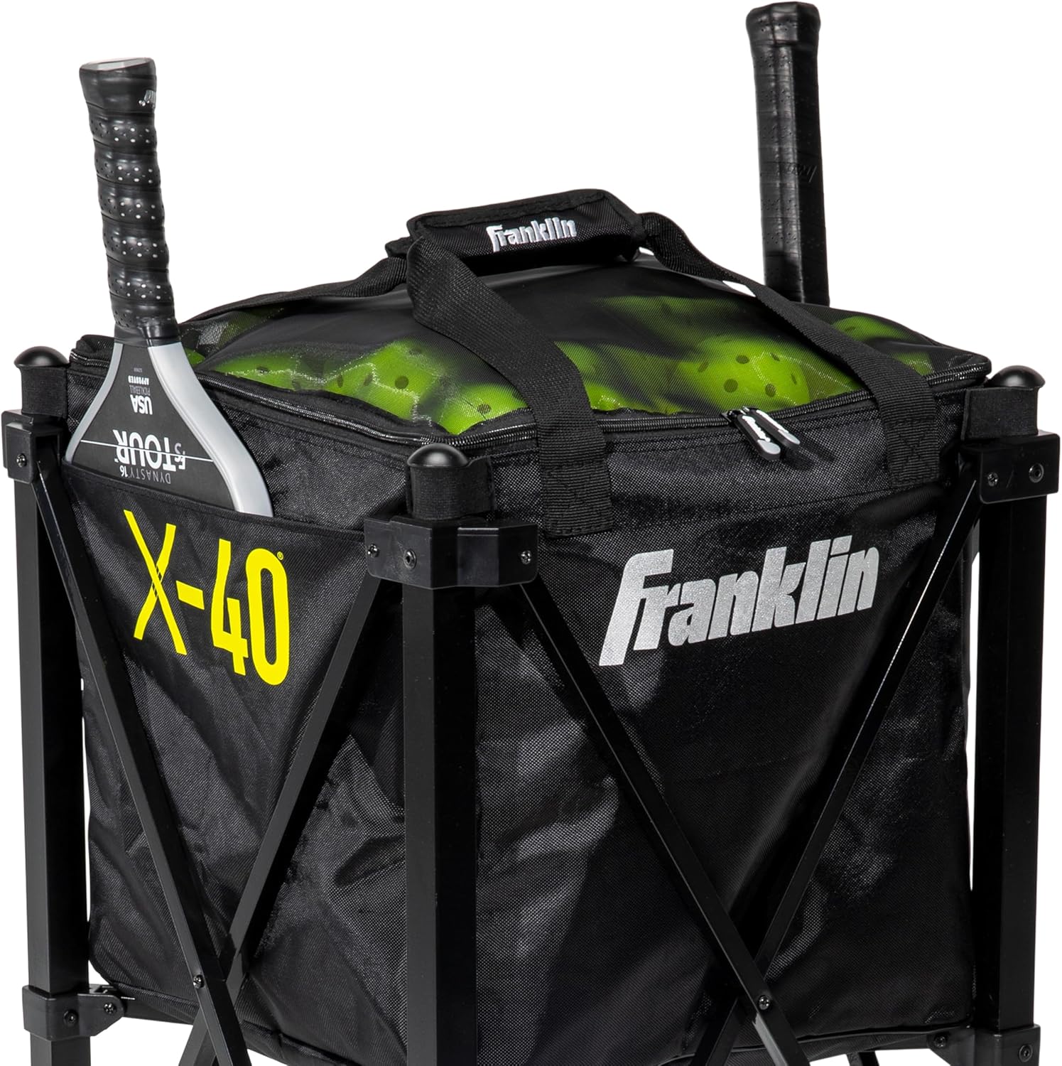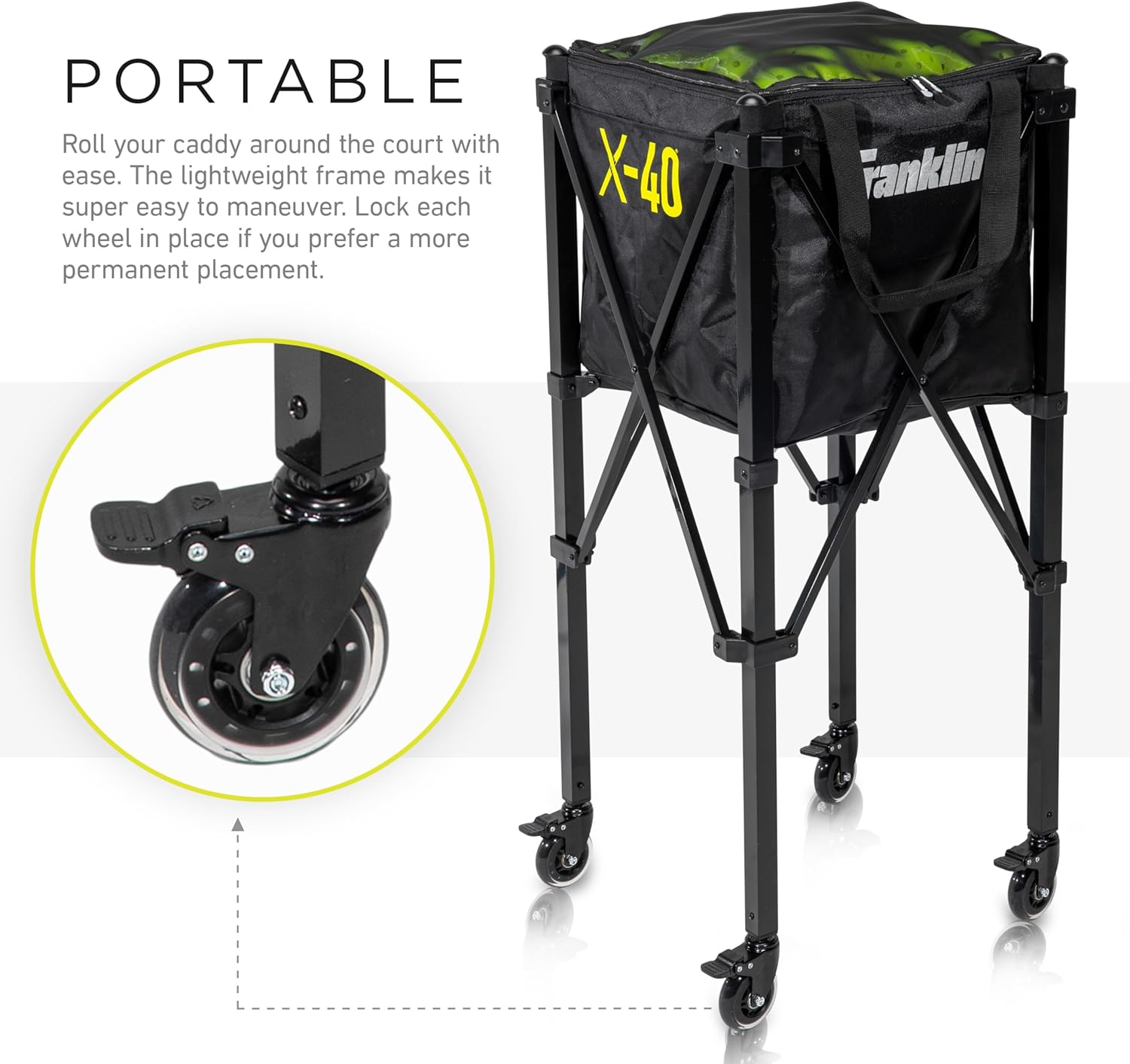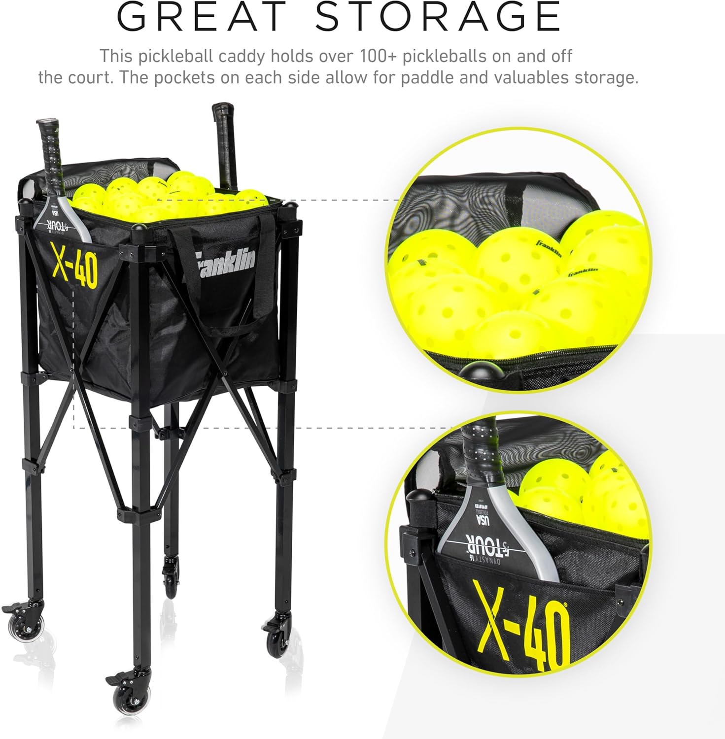 The Franklin Sports Pickleball Hopper is the best way to store and transport your pickleballs to and from the court with ease. Store and transport 100+ pickleballs at once! Designed to be portable, this ball hopper is built on wheels to easily roll around the court and store your pickleballs while you play or practice. Constructed with a removable carry bag, players can remove the bag for carrying, or roll the cart around the court for added convenience. This pickleball caddy is easy to assemble and durably constructed for reliable performance year after year. Perfect for training sessions, this ball hopper is perfect for players looking to practice their shot making skills without having to chase and collect balls. A must have piece of training equipment for any pickleball player, this Pickleball Storage Hopper from Franklin Sports is the perfect way to store and transport your pickleballs with ease!