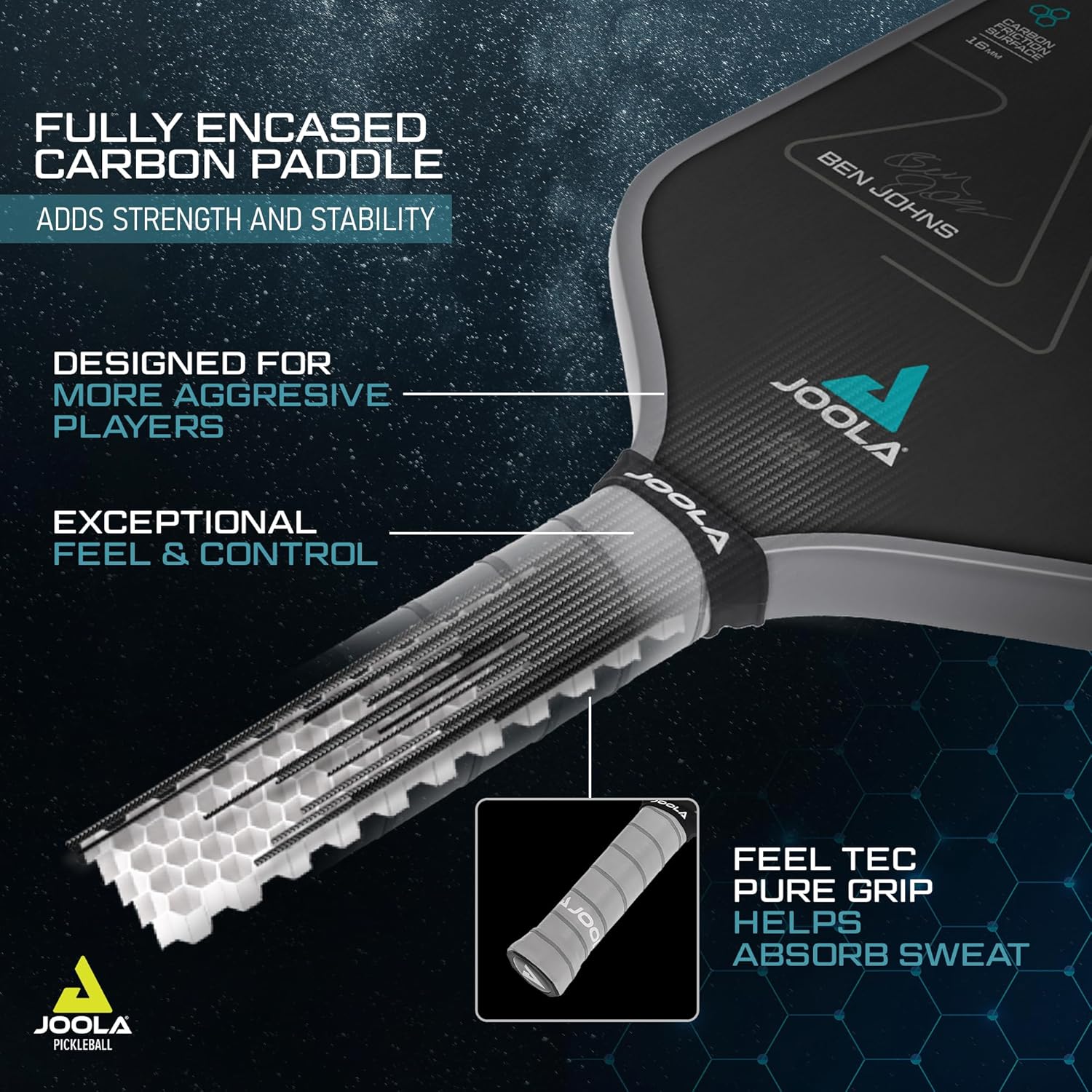 BEN JOHNS SIGNATURE PICKLEBALL PADDLE: JOOLA collaborated closely w/ the world’s #1 player to design his latest pickleball paddle of choice. The JOOLA Perseus paddle offers aggressive, offensive players every technological advantage over their opponents.