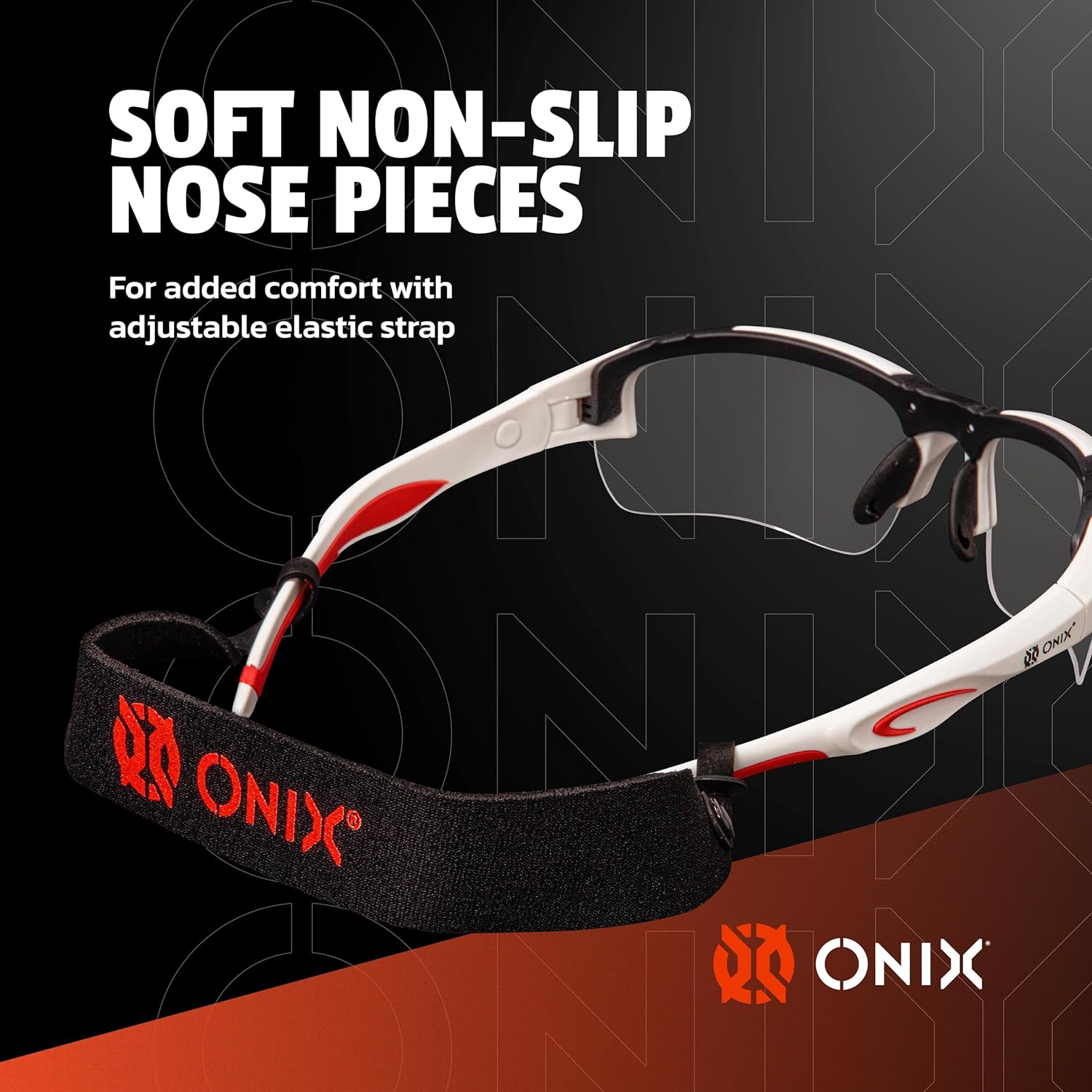 SOFT NOSE-SLIP PIECES — Soft non-slip nose pieces for added comfort with adjustable elastic strap