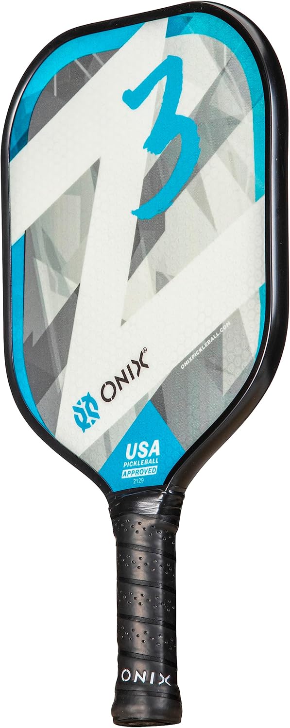 The Onix Composite Z5 is a great power paddle with its fiberglass face and total paddle weight of 8.4-8.7 ounces. This paddle is perfect for players that already have good ball control, but are looking for more pop from the baseline. The Widebody shape on the Z5 is great for beginner through advanced level players with its large sweet spot. The Composite Z5 paddle is perfect for the player that is looking for maximum power and pop in a heavy-weight fiberglass paddle.
