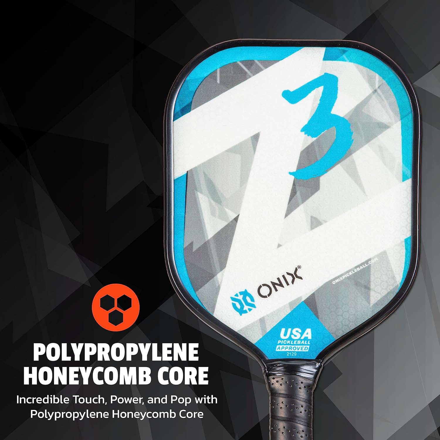 The Onix Composite Z5 is a great power paddle with its fiberglass face and total paddle weight of 8.4-8.7 ounces. This paddle is perfect for players that already have good ball control, but are looking for more pop from the baseline. The Widebody shape on the Z5 is great for beginner through advanced level players with its large sweet spot. The Composite Z5 paddle is perfect for the player that is looking for maximum power and pop in a heavy-weight fiberglass paddle.