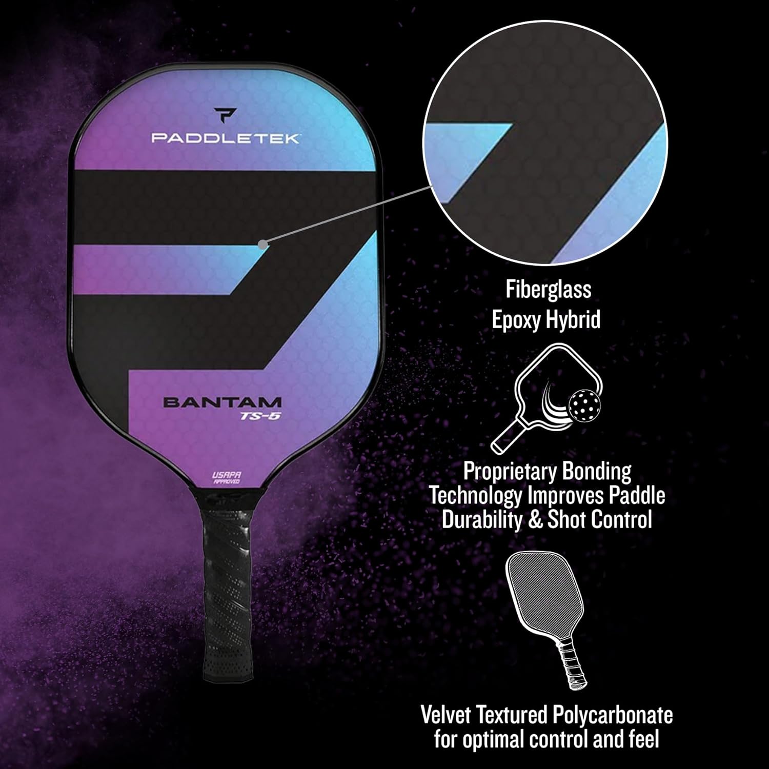 LIGHTWEIGHT DESIGN: The Bantam TS-5 is a lighter version of our popular EX-L. The reduced weight of this pickle ball paddle combines with a Bantam PolyCore interior for all the power you expect from the Bantam series, plus increased speed, control, and maneuverability.