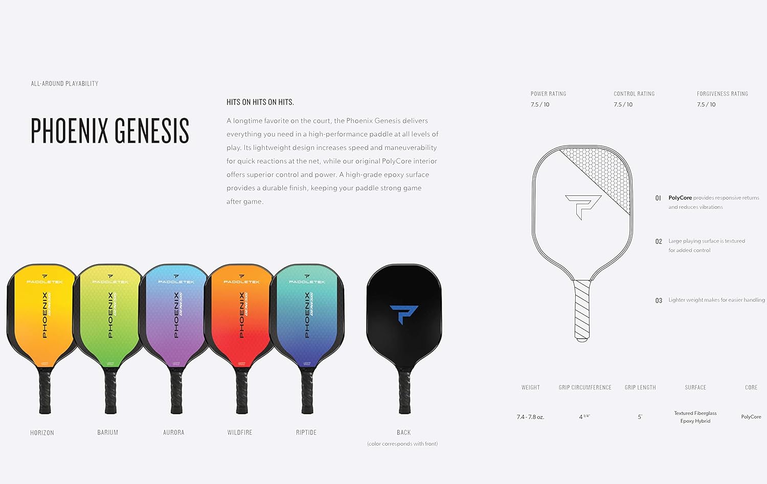 High-Performance Design: Phoenix Genesis pickleball paddles boast a lightweight build for swift reactions at the net. Its PolyCore interior ensures superior control and power on the court, making it suitable for players of all levels.