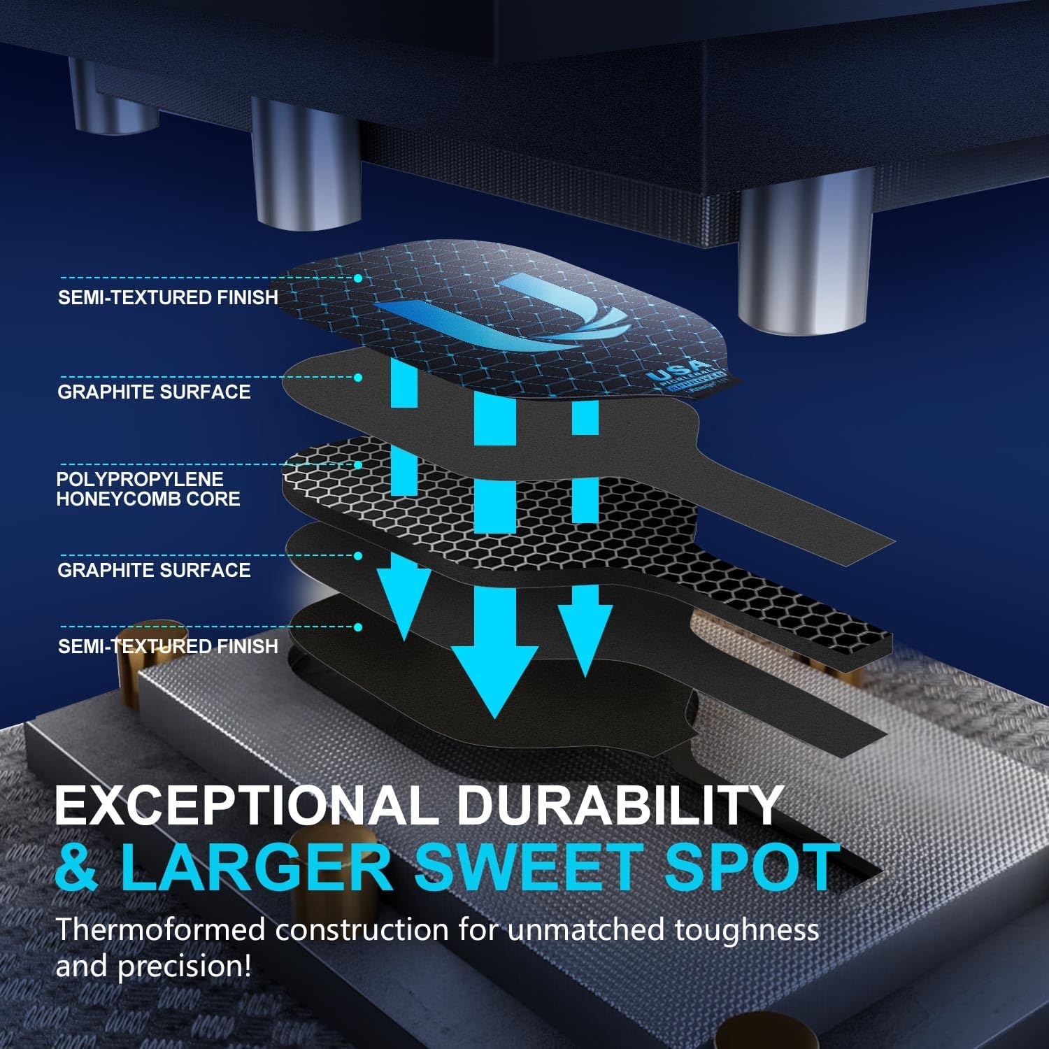 USA Pickleball Approved Rough Texture Graphite Surface for Spin & Cushioned Perforated Contour Grip Against Slipperiness