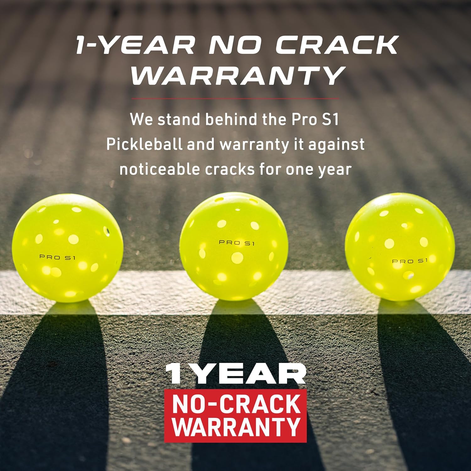 【 Cutting-Edge Design 】 The Pro S1 Pickleball Ball introduces a revolutionary cutting-edge patented design that guarantees consistent flight, bounce, and unmatched durability. Backed by a 1-Year No-Crack Warranty, it establishes a new standard in pickleball ball technology, catering to players of all levels