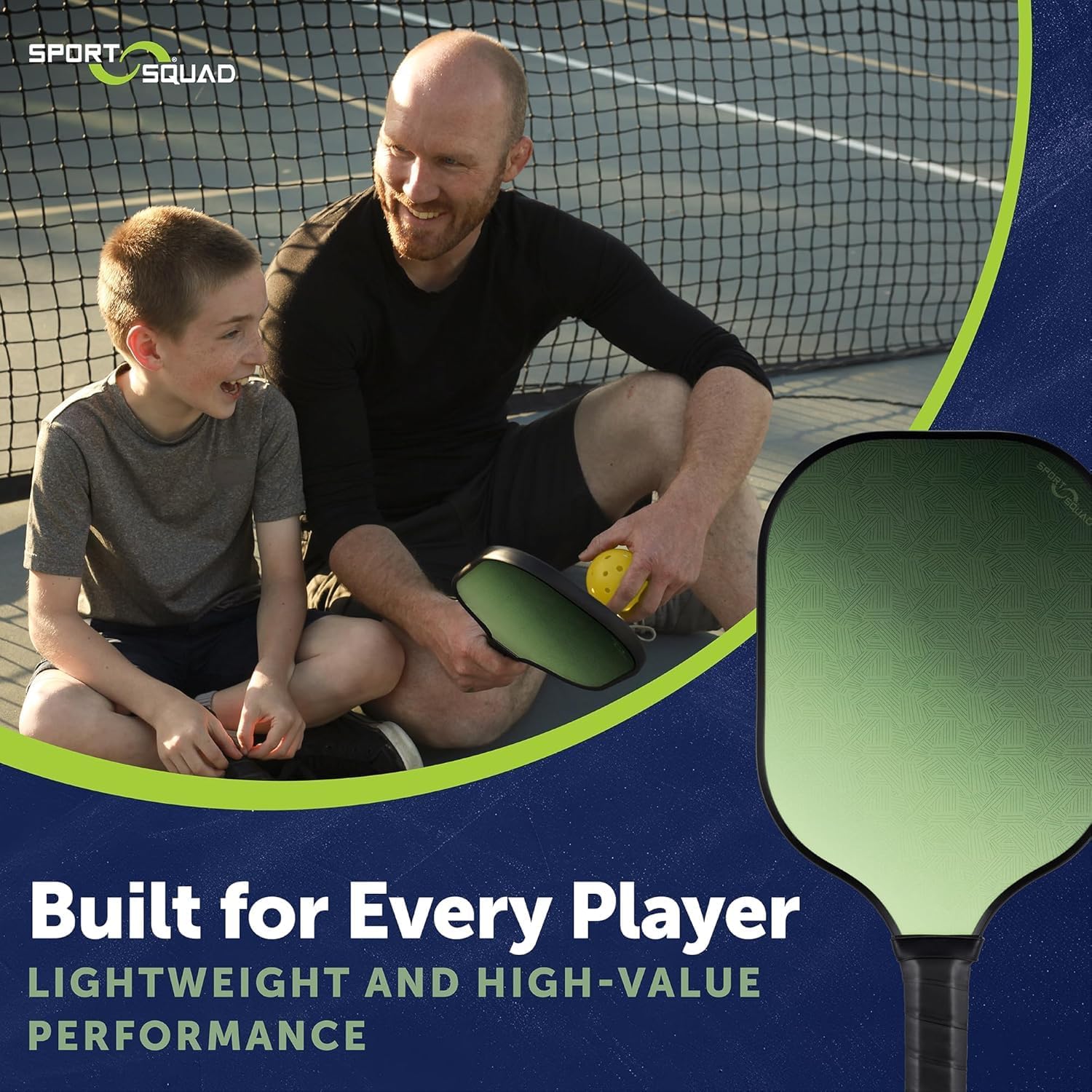DURABLE GRAPHITE FIBERGLASS SURFACE: Built for power, precision, and long-lasting durability, this fiberglass paddle delivers strong, controlled shots while remaining lightweight—ideal for fun matches with family and friends.